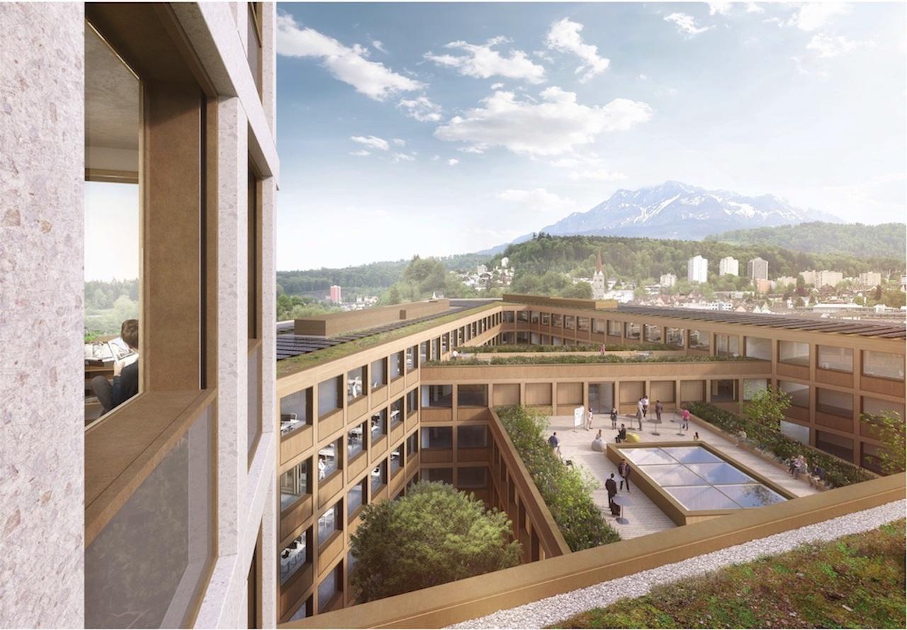 Er stimmte dem Dekret über einen Sonderkredit über 177.4 Mio. Franken für die Realisierung eines Verwaltungsgebäudes am Seetalplatz in Luzern Nord zu. Über das Vorhaben kann die Luzerner Bevölkerung voraussichtlich im November 2021 abstimmen. Bilder: Innenhof, Arbeitsräume